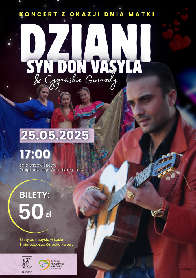 To nie tylko koncert – to prawdziwa muzyczna uczta, pełna ognistych rytmów, wzruszających ballad i barwnych emocji, które poruszą każde serce. Dziani, dziedzic talentu i charyzmy Don Vasyla, z powodzeniem kontynuuje muzyczną tradycję swojej rodziny, zdobywając serca publiczności w całej Polsce. Teraz zagości również u nas – w Żmigrodzie.