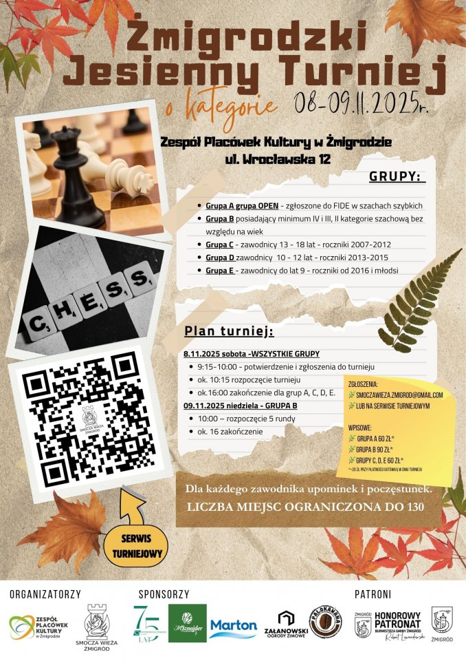 Już w dniach 8–9 listopada 2025 r.Żmigrodzkim Ośrodku Kultury odbędzie się Żmigrodzki Jesienny Turniej Szachowy o Kategorie – wydarzenie, które co roku przyciąga zarówno doświadczonych graczy, jak i młodych pasjonatów królewskiej gry.